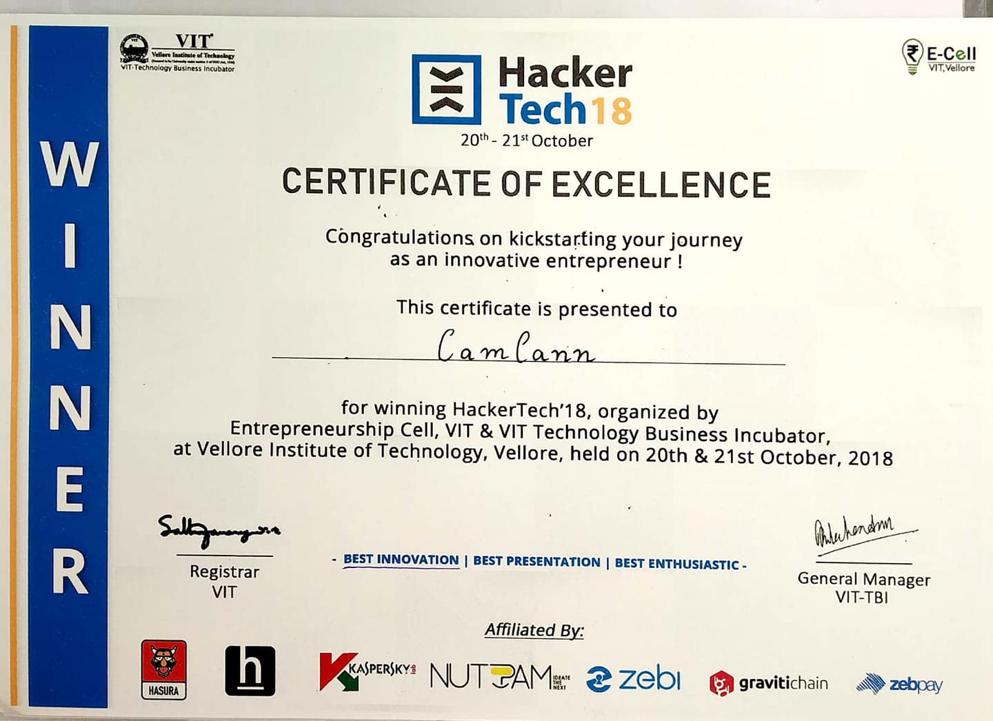 Recently, our team took part in HackerTech, which is a 36 hour hack, conducted by E-Cell VIT along with the Business Incubator-VIT, where we achieved laurels in terms of getting the following prizes: